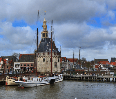 Voor een snelle dosis historie loop je langs de Hoofdtoren (1532), ooit gebouwd ter verdediging van de haven — je ziet nog steeds hoe strategisch die plek is.