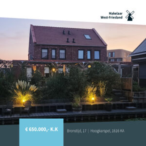 De vraagprijs stellen we samen vast op basis van een marktvergelijking, unieke kenmerken van jouw huis en onze kennis van de woningmarkt in West-Friesland. Een goede vraagprijs zorgt voor meer bezichtigingen en een snellere verkoop.